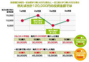 買付数量は価格が高いときは少なく、価格が低いときは多くなるから